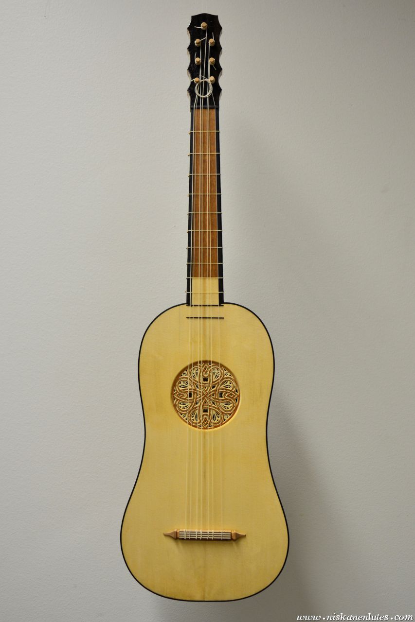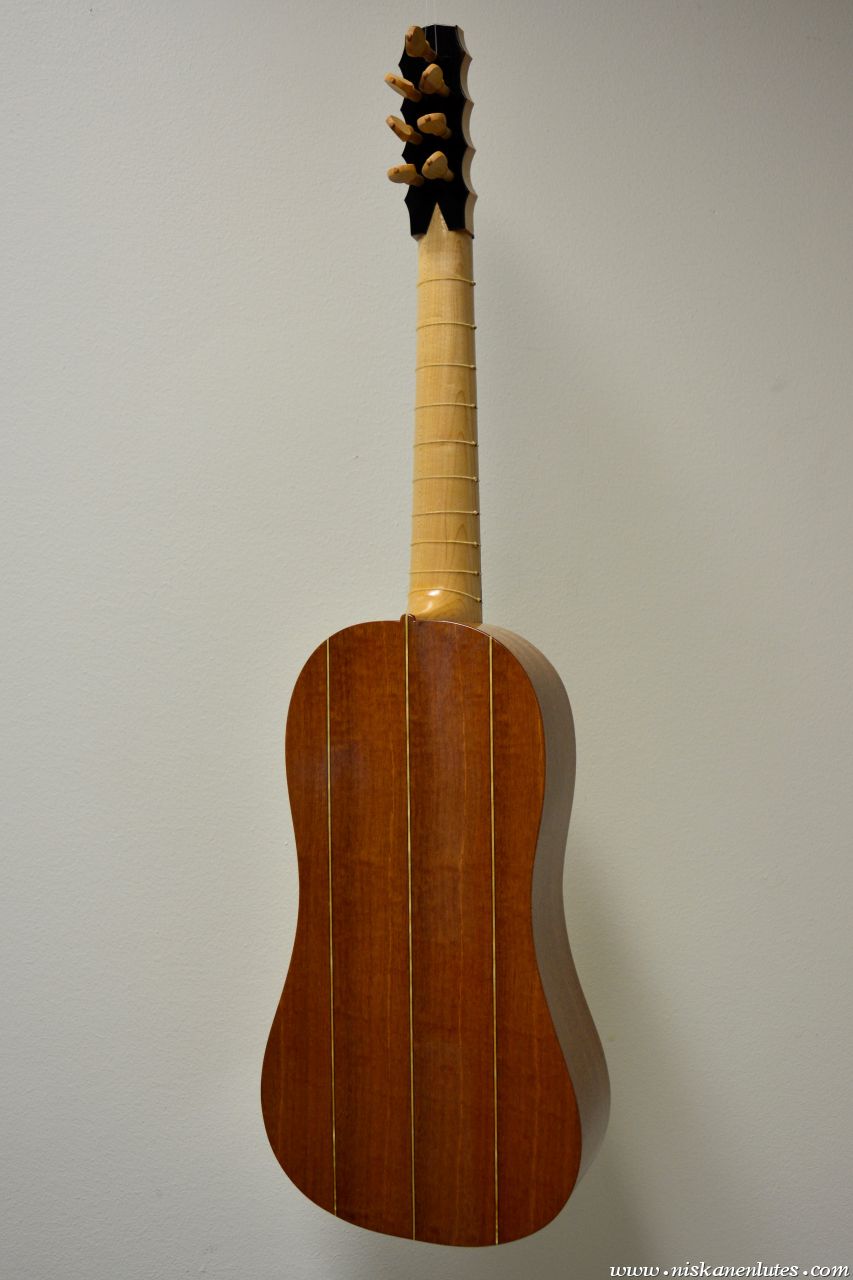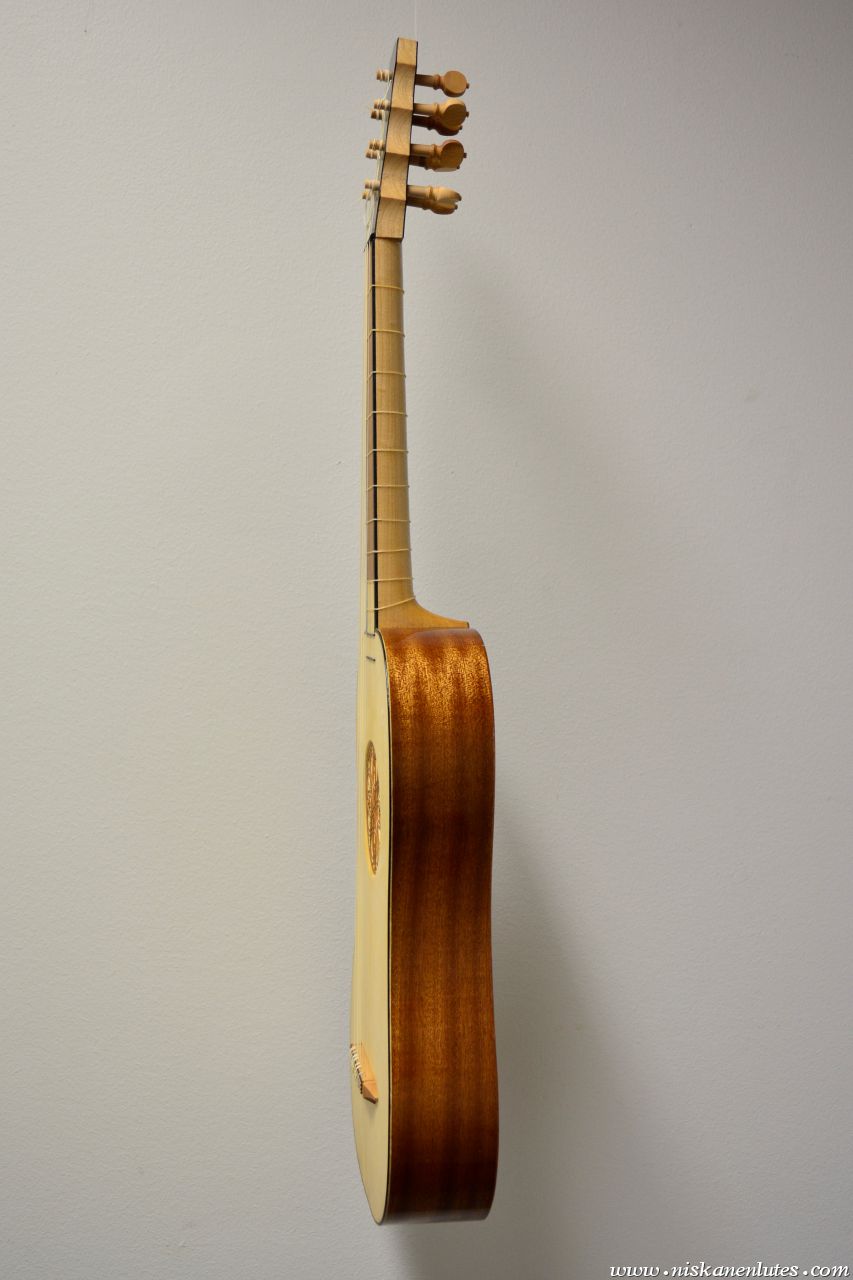 Made of figured sapele with a flat back and aformosia fingerboard, maple neck