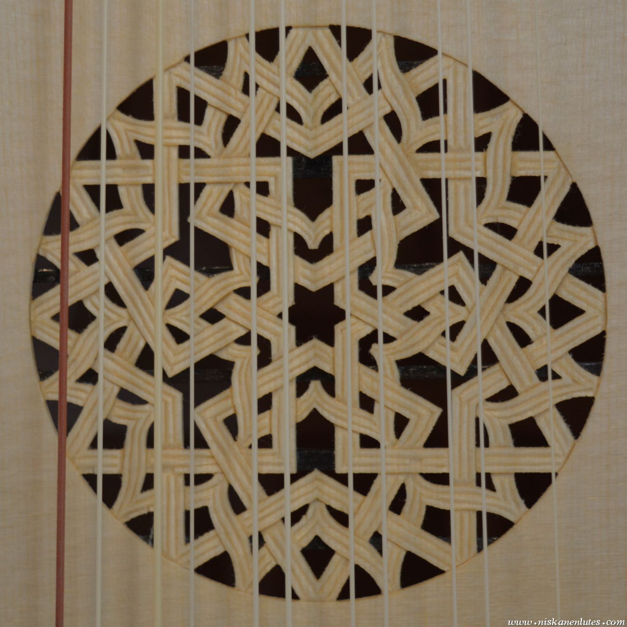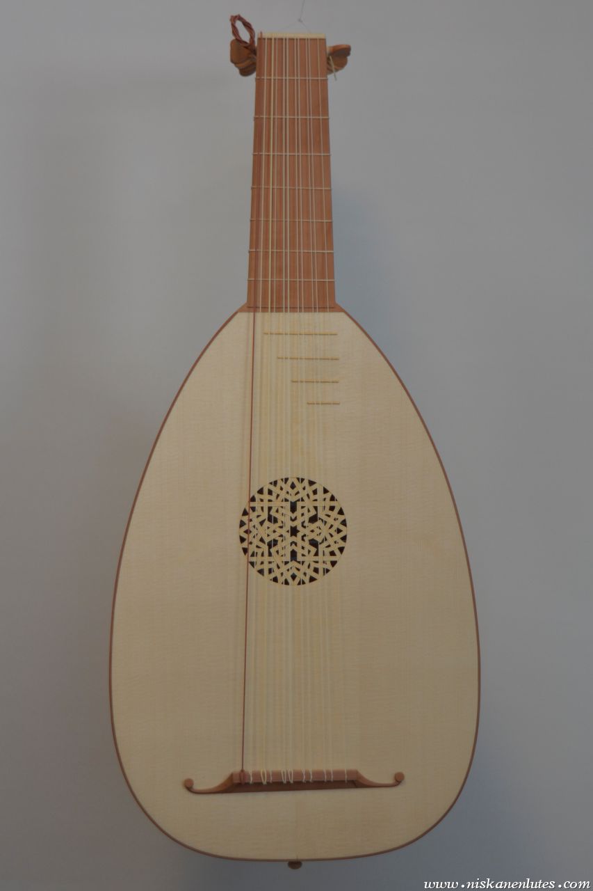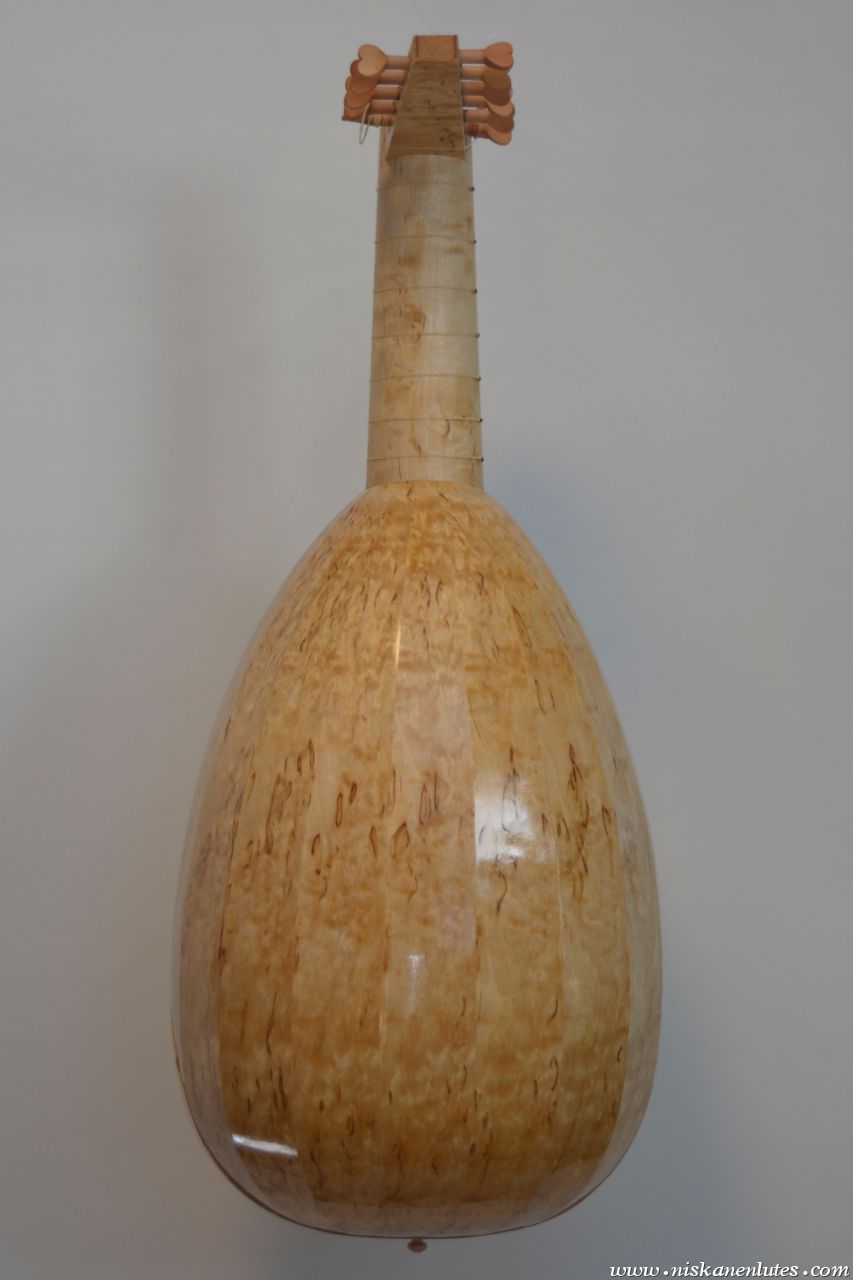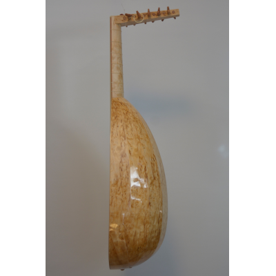 Renaissance lute tuned in A, own design. Made with masur birch and plumwood.